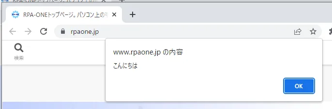実行するとアラートが表示されます。