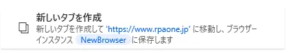 「新しいタブを作成」アクションを使うと、指定したブラウザー上に新しいタブが作成され、指定したURL先が表示されます。また、その際に新しいインスタンスが生成され、そのインスタンスから新しいタブを操作できるようになります。