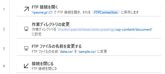 以上、「FTP」アクションについての解説でした。ネットワークの知識が少し必要な分野ですが、サーバとのやり取りをする上で便利なアクションです。ぜひ使いこなせるようになって自動化できる業務の幅を広げてください。